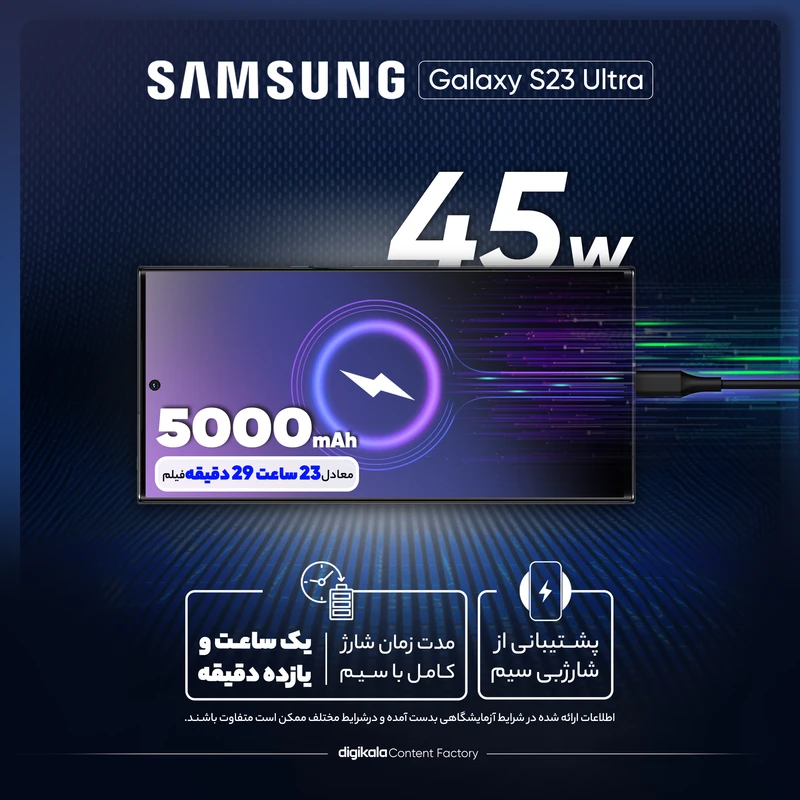 سامسونگ Galaxy S23 Ultra بهعنوان گل سرسبد گوشیهای هوشمند خانواده S23 با بهره بردن از مشخصات فنی قدرتمند معرفی شد. در نگاه اول از نظر طراحی در نظر گرفته شده، سامسونگ Galaxy S23 Ultra به نسبت نسل قبلی یعنی Galaxy S22 Ultra تغییرات زیادی نداشته و تقریبا هر دو گوشی از طراحی مشابهی بهره بردند. اما باید بدانید که Galaxy S23 Ultra به نسبت نسل قبلی، قدرتمندتر از همیشه وارد میدان رقابت شده است. در نمای روبهرویی این گوشی به صفحهنمایش شگفتانگیز با ابعاد 6.8 اینچ و رزولوشن 1440×3088 پیکسل از نوع Dynamic AMOLED 2X مجهز شده. از جمله قابلیتهای قدرتمند این صفحهنمایش میتوانیم به توانایی نمایش 501 پیکسل در هر اینچ، نرخ بروزرسانی 120 هرتز و حداکثر روشنایی 1750 نیت (nits) اشاره کنیم. تمام این مشخصات سبب شدهاند تا صفحهنمایش این گوشی، هرآنچه که از یک صفحهنمایش گوشی پرچمدار توقع دارید را برآورده کند. برای سنسورهای قسمت پشتی هم سامسونگ دست به تغییر جدیدی زد و این بار سنسور دوربین عریض با رزولوشن 200 مگاپیکسل را برای این گوشی هوشمند در نظر گرفت. سنسوری که بدون هیچ شکی توانایی ارائه عملکرد فوقالعادهای در نور روز و نور شب دارد. سنسور 10 مگاپیکسل از نوع پریسکوپتلهفوتو با توانایی زوم 10 برابری اپتیکال در کنار سنسور 10 مگاپیکسل از نوع تلهفوتو با قابلیت زوم 3 برابری اپتیکال و سنسور 12 مگاپیکسل از نوع فوق عریض (ultrawide)، دیگر سنسورهای دوربین قسمت پشتی این گوشی را تشکیل میدهند. سنسور دوربین عریض این گوشی توانایی ضبط ویدیو با حداکثر کیفیت 8K و سرعت 30 فریم در ثانیه را هم دارد. برای دوربین سلفی، سنسور با رزولوشن 12 مگاپیکسل در نظر گرفته شده که توانایی ضبط ویدیو با حداکثر کیفیت 4K و سرعت 60 فریم در ثانیه را دارد. حضور پردازنده قدرتمند اسنپدراگون 8 نسل دو شرکت کوالکام هم سبب شده تا سامسونگ Galaxy S23 Ultra بهراحتی هرچه تمامتر از پس اجرای بازیهای سنگین و باگرافیک بالا بربیاید. باتری با میزان ظرفیت 5000 میلیآمپرساعت و پشتیبانی از فناوری شارژ سریع با توان 45 وات هم از دیگر مشخصات در نظر گرفته شده برای این گوشی هوشمند است. قلم هوشمند S-Pen هم با قابلیتهای جذاب این گوشی را همراهی میکند.